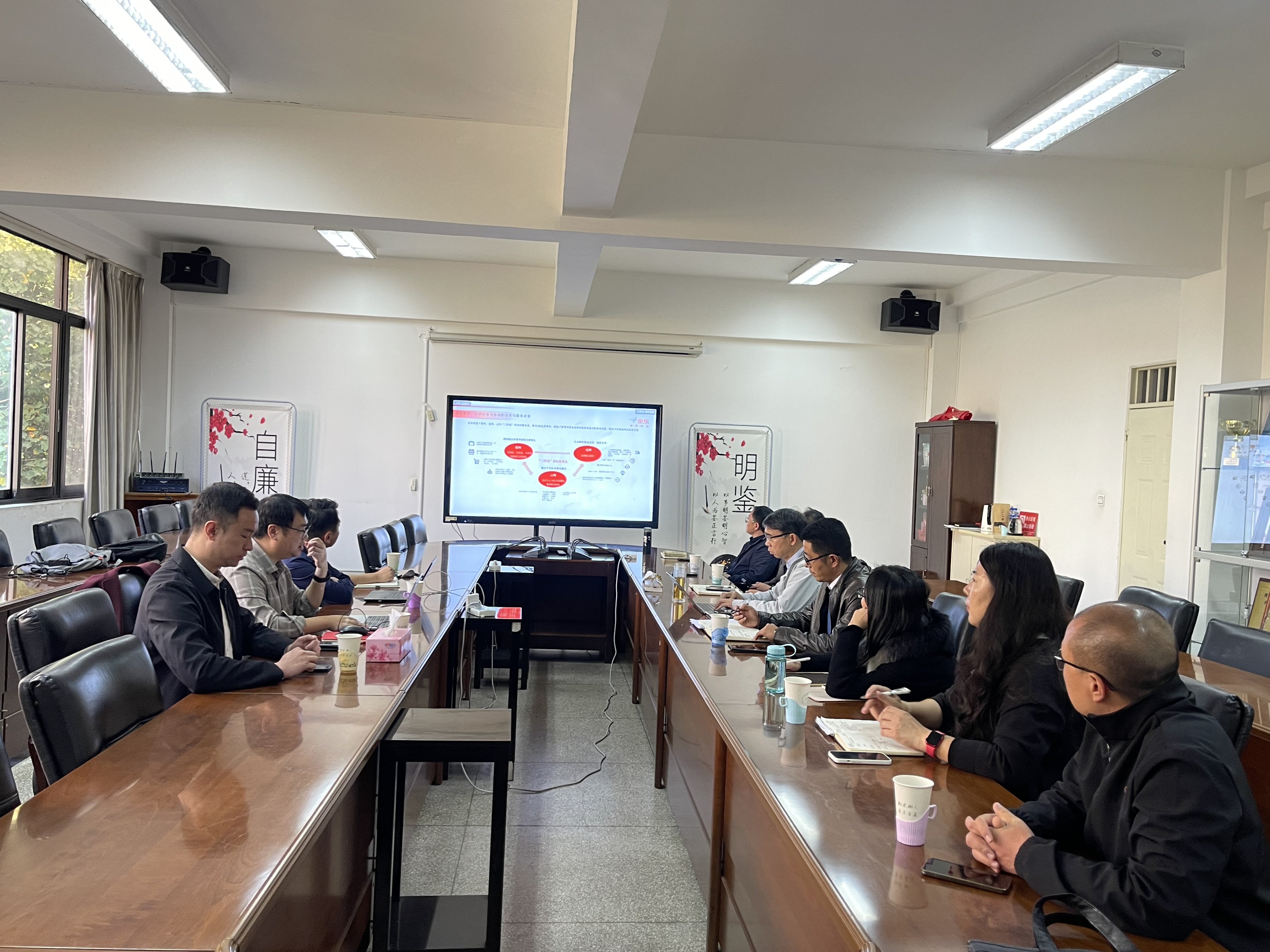 梁志宏、张连刚分别介绍了公司的基本情况和学科优势,特别是在电子商务、市场营销、人工智能等领域的研究成果,希望借助此次调研交流,进一步加强与京东集团的合作,依托京东的行业优势和市场资源,共建人才培养基地,联合开展实习、就业、培训等项目,共同推动技术创新和人才培养,打造多层次、全方位的合作关系。
