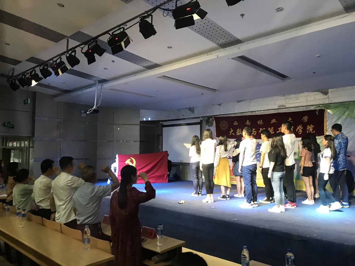 活动中,蒋雪坤同志 朗诵了诗歌《我爱你,我的祖国》,庆祝新中国成立70周年;毕业生党员代表刘晓君同志发表了情真意切的感言,介绍了自己的成长历程,回顾了入党的情景,总结了入党来的思想、学习、工作表现,感恩母校,祝福老师和学弟学妹,并立誓在工作中时刻提醒自己注重党性修养,不负党的重任,用一生践行入党誓言。