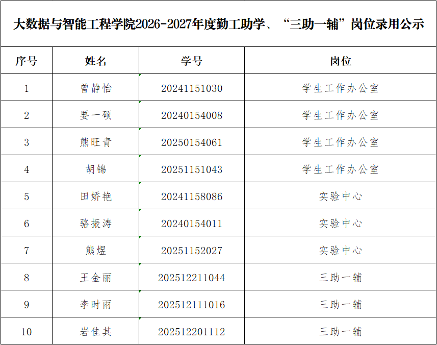 根据公司工作安排,经员工个人申请、资格审查及面试考核,现将2026-2027学年勤工助学、“三助一辅”岗位拟录用名单公示如下: 公示期为2026年3月19日18:00-3月20日18:00。如有异议,请在公示期内实名向公司员工工作办公室反映,逾期未反映视为无异议。 联系人:吴老师 联系电话:0871-638634932026年国际足联世界杯2026年3月19日
